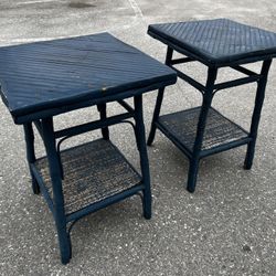 $40 For both! Two Vintage Boho Wooden Bamboo Wicker Rattan Blue Painted End Side Tables Plant Stands! Sturdy. 18x18x26in$40West Palm Beach, FL