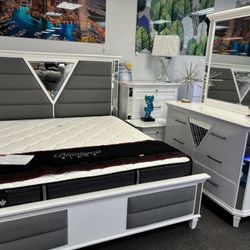 White Bedroom Set 5pc ( Free Mattress) W/ Built-in LED Lights& Glitter Accents For Sale ( We Deliver)$999West Palm Beach, FL