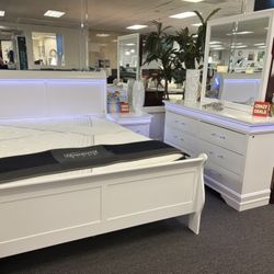 Labor Day Sale! White 5pc Bedroom Set W/ LED Lights For Sale! (furniture Assembly) FREE MATTRESS!$999West Palm Beach, FL