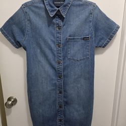 Calvin Klein Blue Denim Jeans Button Down Cap Sleeve Size Large $48Wellington, FL