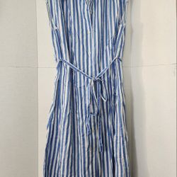 H&M Dress Women's Size Large Blue & White Striped Tie Waist Button Up Sleeveless $25West Palm Beach, FL