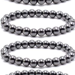 Byson 4 Pcs/Set Black Hematite 8mm Ball Bead Magnet Stone Bracelet for Women Men Elastic Stretch Beaded Bracelets Jewelry Unisex$15Wellington, FL