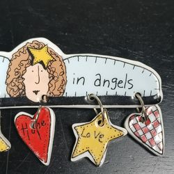 “I Believe In Angels” Ceramic Brooch/Pin 1997 Dangle BROOCH Faith Religious$10Ocean Brz Pk, FL