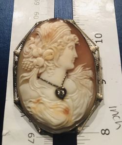 Vintage Handmade 14K WG Carved Shell Cameo, Diamond Necklace, Pin/Brooch, 2.4”x1.8”, 19 grams$1,000Lake Worth, FL