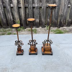 3 Pc Set of Brown Wood Pillar Candle Holders$20Lake Worth, FL