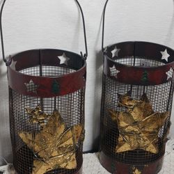 Set 2 Christmas Rustic Metal Mesh Candle Holder Table Top Hanging Stars Trees $18Ocean Brz Pk, FL