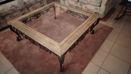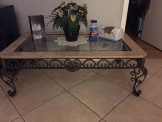 Glass And Iron Wrought Coffee Table With Stone Insert Original Cost $399$200Palm Beach Gardens, FL