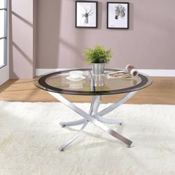 Round Coffee Table with Clear Glass Top, Crisscross Chrome Legs$150West Palm Beach, FL