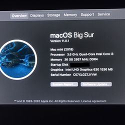 2018 Mac Mini 3.6Ghz Intel i3 36GB 128 SSD$475Lake Worth, FL