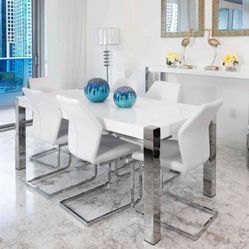 Modern White Dining Table 6 Chairs 90 Days No Interest $50 Down$1,180Lake Worth, FL