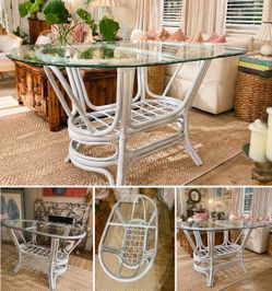 Boho Rattan Oval Dining Table / Desk, Glass Top, 59”$300West Palm Beach, FL