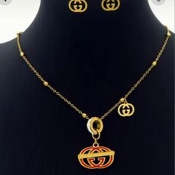 Beautiful gold color chain with pink pendent and earrings new$10Port St. Lucie, FL