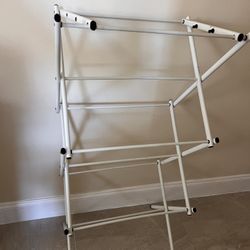 white, three-tiered, foldable metal clothes drying rack. $5West Palm Beach, FL