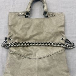 Elliott Lucca Leather Tote Shoulder Bag Taupe Gray Chain Strap Large$59Boynton Beach, FL