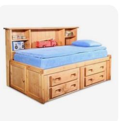 Twin Bed/Frame with shelves and drawers Book Shelf, Dresser With Mirror All Included. . Mattress included. In great condition!$400Vlg Wellingtn, FL