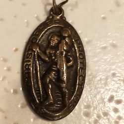 Vintage Sterling Silver Chapel Saint Christopher Protect Us Pendant - No Chain