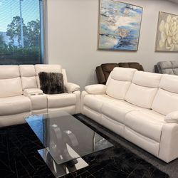 White Man-Made Leather Reclining 2 PC Sofa & Loveseat Set $999West Palm Beach, FL