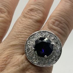 Sz 7 Beautiful Cluster Diamond Engagement Ring With Blue Sapphire Stones$1,750Port St. Lucie, FL