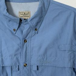 LL BEAN Men's XL Sky Blue Fishing Vented Long Sleeve Shirt Nylon Blend Pockets$20Ocean Ridge, FL