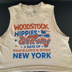 Woodstock Hippies Tank Top Cut off Shirt Women's XS Tan 100% Cotton$20Boynton Beach, FL