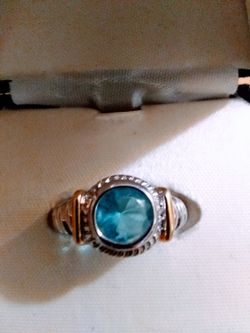 Beautiful πΉ aquamarine Ring 925 italian silver with 14 kt gold stripes on the side size 7.πππ$75Lake Worth, FL