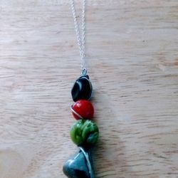 Beautiful β€οΈ Black,Red,Green and Silver Glass Bauble Necklace πππ$8Lantana, FL