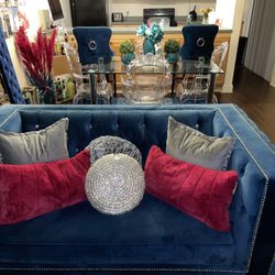 Blue Tufted Sofa 2pc Set Mirror And Barstools$1,250Lake Worth, FL
