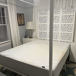 Bedroom Set canopy, bed, wood carving headboard, IKEA lacquer night tables 2 glass and brass lamps$225West Palm Beach, FL