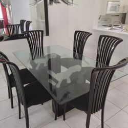 Dining Room Thick Glass Top Table And 6 Chairs $300Port St. Lucie, FL