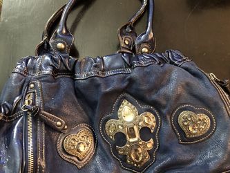 KATTY VAN ZEELAND purse navy blue silver metal rhinestone hearts all leather$22Boynton Beach, FL