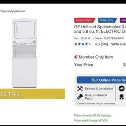 Stacked Washer Dryer Like New- GE Unitized Spacemaker 3.8CuFt Washer and 5.9CuFt ELECTRIC Dryer in White$500West Palm Beach, FL