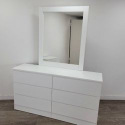 Solid Wood White 6-Drawer Dresser w/ Detachable Mirror$250Boynton Beach, FL
