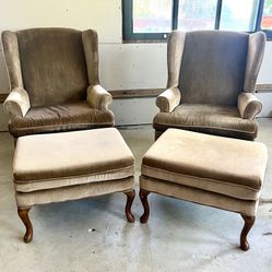 Pair Of Two Wingback Chairs In Beige Velvet With 2 Ottomans$80Vlg Wellingtn, FL
