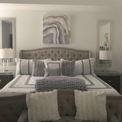 Cama Queen Gris Sin ColchĂłn $750Orlando, FL