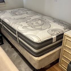 Twin mattress, boxspring, metal bed frame$20Orlando, FL