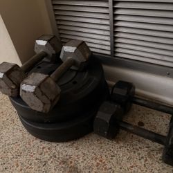 Adjustable dumbbell and barbell set with multiple plates and handles (as shown).$75Oakland, FL