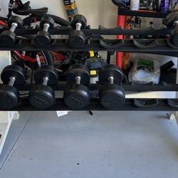 Set Dumbells with Rack ALL BRAND NEW IN BOX 📦 Set 2 Each (5/10/15/20/25) 150 Lbs Rack 2 Tiers FIRM PRICE$250Orlando, FL