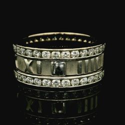 Tiffany & Co. Atlas 18k White Gold 1.60ctw Diamond Roman Numeral Wide Band Ring$900Jupiter, FL