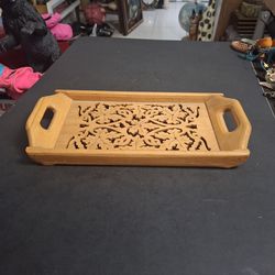 Vintage Carved Wooden Serving Tray With Intricate Pierced Fretwork W/Handles Decorative & Practical 13" x 6.75"$20Tamarac, FL