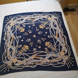 Oscar de la Renta Scarf Navy Blue with White Pearl Beads pictured 31 1/2 inches X 30 inches $50Lake Worth, FL
