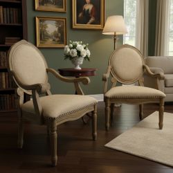 Pair of Louis XVI Style Medallion Armchairs – Weathered Wood & Nailhead Detail$295Boynton Beach, FL