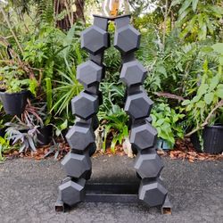 SET OF MATCHING STEEL HEX DUMBBELLS & 3 TIER DUMBBELL RACK (PAIRS OF) : 15s 20s 25s 30s 35s 40s 45s$450Deerfield Beach, FL