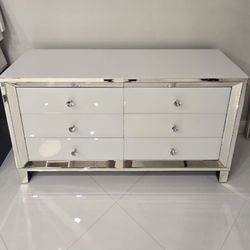 “Mirrored Glam Bedroom Set – 6 Drawer Dresser + 2 Nightstands – Crystal Knobs$800Boca Raton, FL