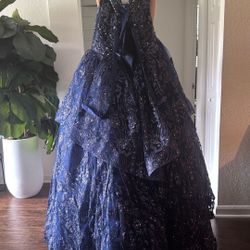 Dark Blue Sequin Long Dress Wing Sleeved $75Boca Raton, FL