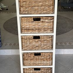 46” Wood 5-Drawer Rattan Basket Storage Tower Chest$90Lake Worth, FL