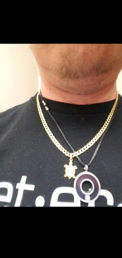 1 Cuban Chain In Gold Plated With Square Virgin And 2 Mariner Chain With Pendants$100Kissimmee, FL