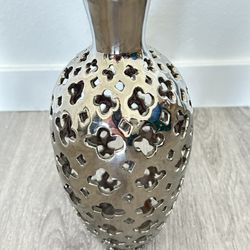 Decorative silver vase with elegant cut-out geometric design. Modern style, perfect for living room, dining area, entryway, or bedroom.$20Davenport, FL