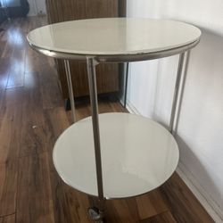Vintage Ikea STRIND White Glass & Metal Rolling Side Table $40Thonotosassa, FL