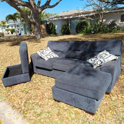 blue COUCH with CHAISE and LARGE OTTOMAN $30Seminole, FL