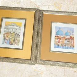 2 Original Art Prints by Amaranta De Francisci Watercolor Framed Signed Matted Wall Venice Italy $50Clearwater, FL